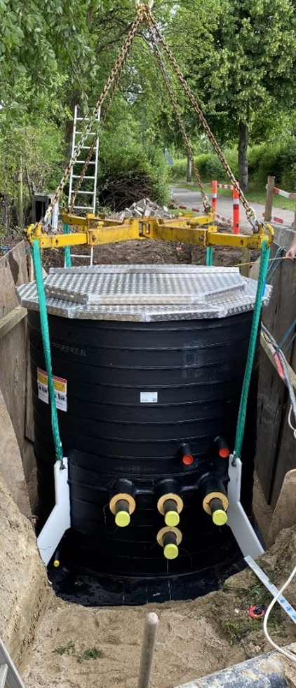 An interception pit collects water from the primary groundwater channel, supplying it to the network. The main distribution substation has been installed in the technical room of the kindergarten, alongside the heat pump-integrated substation dedicated to that building. Additional dedicated heat pump-integrated substations have been installed at the municipal building and a multifamily residence.
