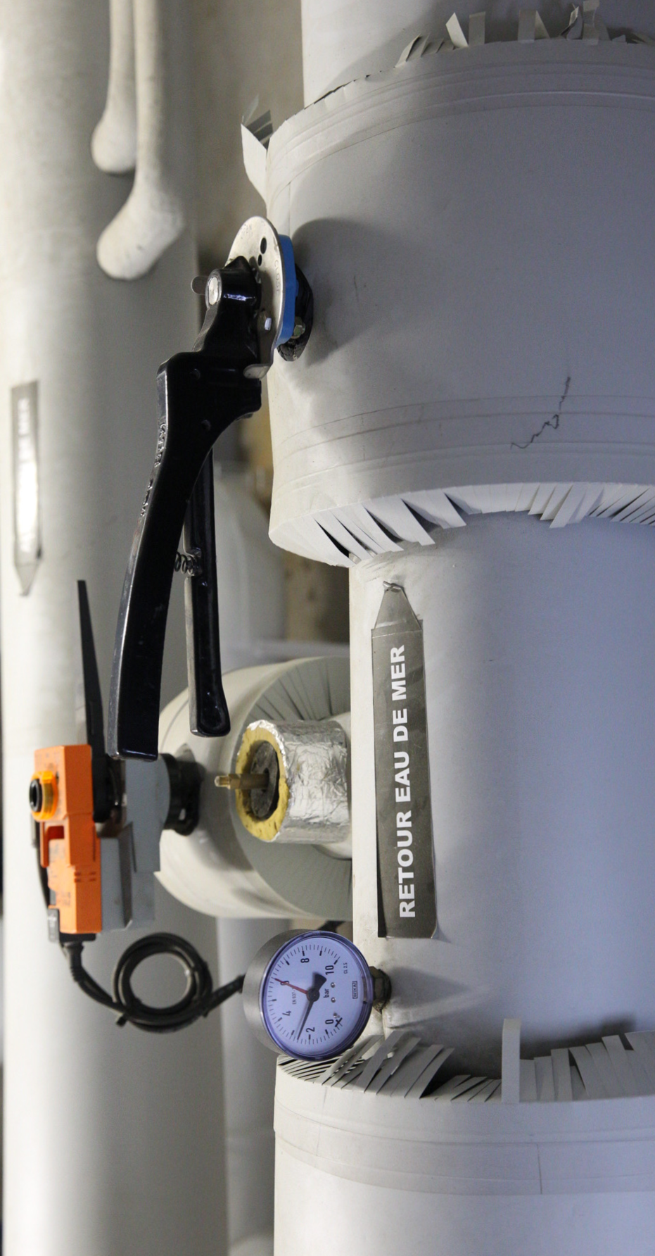 Heating and domestic hot water preparation for all buildings and facilities takes place inside the central thermal station : geothermal water is collected at 62 °C and used to condition technical water to the different temperature levels needed; technical water is then distributes from here to the uses. In addition to distributing geothermal and technical water throughout the healthcare facility, high electricity consumption is also required to operate the wet cooling tower. This demand is particularly pronounced during summer when there is no need for space heating, hence higher temperature water is available after domestic hot water preparation.