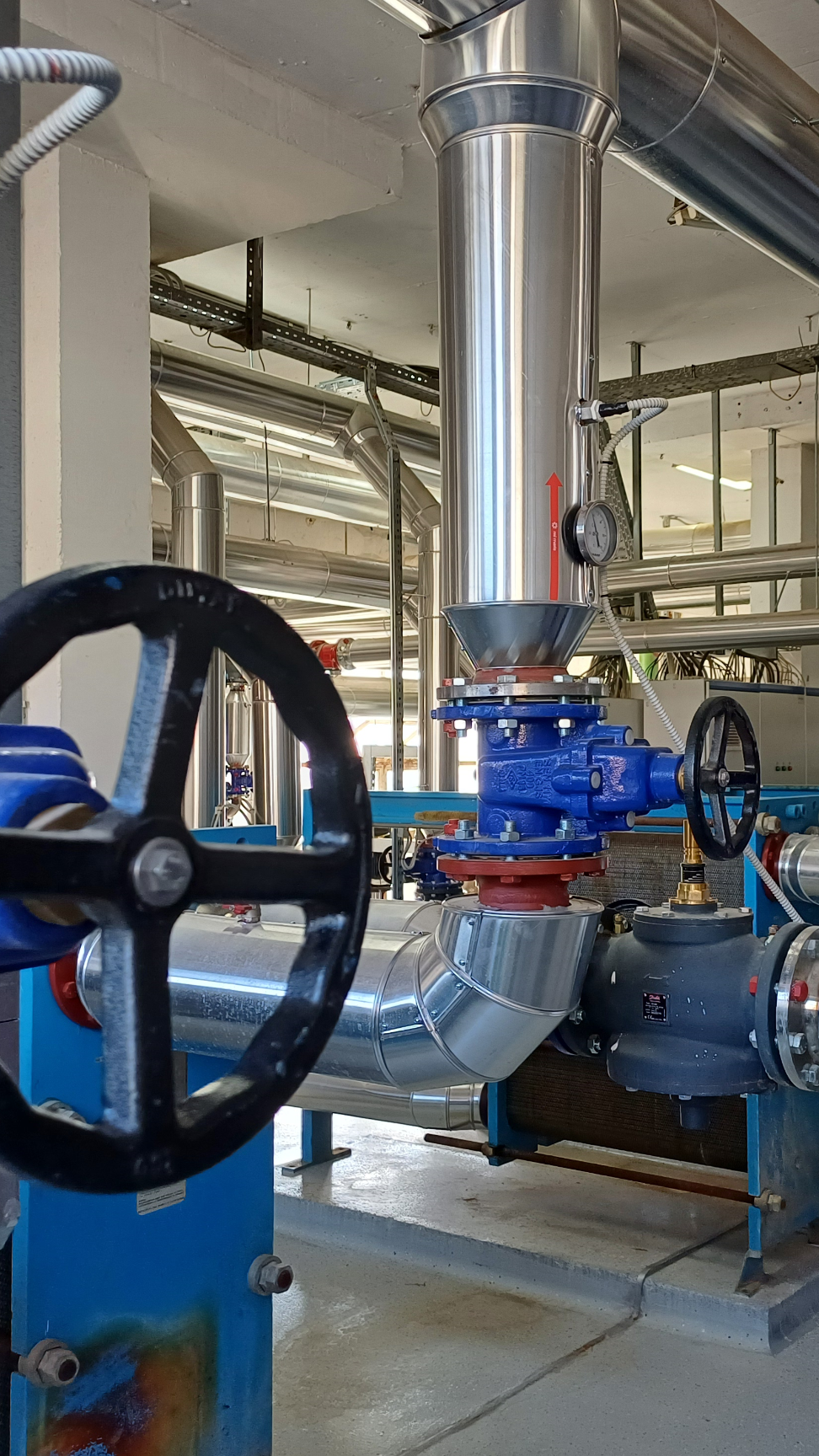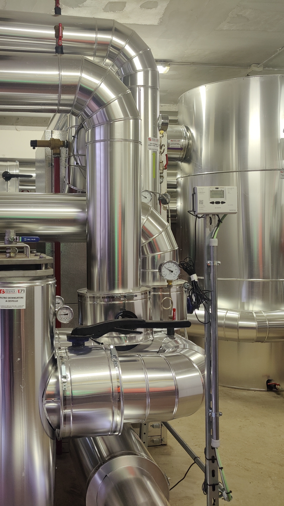 The new heating central is also equipped with geothermal heat pumps that generate heating during periods of low electricity costs, while also enabling space cooling distribution to the tertiary buildings, thus boosting both utility and energy efficiency, by allowing to select the most environmentally friendly and affordable energy vector on an hourly basis. Additionally, since the network’s distributed temperature is insufficient for domestic hot water preparation, booster heat pumps are installed in each building to meet requirements. Meanwhile, space heating and cooling are generated centrally, as described.